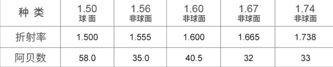 选镜片的折射率也是考虑要点,涉及到阿贝数这个关键数据,高阿贝数比低阿贝数看物体更清晰舒适,如下图:
