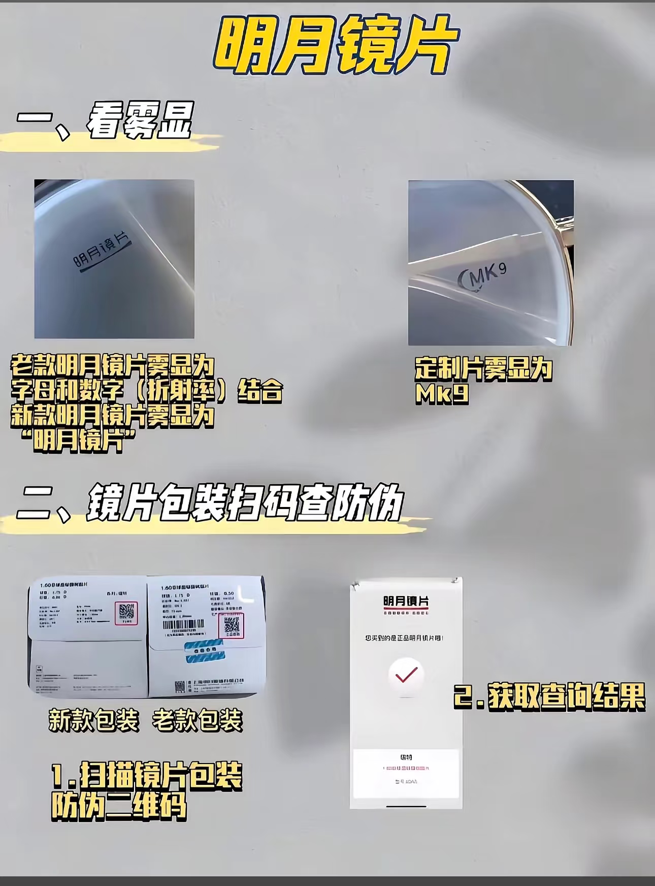 品牌镜片的防伪标志是需要知道的,不过加工时可能磨掉部分标志